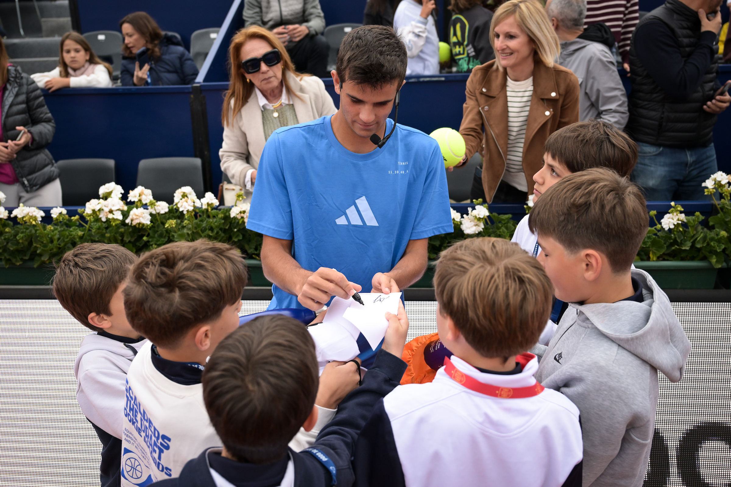 El viento matinal no ha asustado al millar de niños que, junto con sus familiares, se han reunido la mañana del domingo en la pista Rafa Nadal para disfrutar del Clínic Generalitat de Catalunya, donde las raquetas más jóvenes del RCTB-1899, junto con más de 70 niños de 22 clubes catalanes, pelotearon con Cameron Norrie y Rafael Jódar. Goody, la mascota oficial del Barcelona Open Banc Sabadell, ha repartido entre el público camisetas y pelotas, muchas de las cuales han acabado firmadas por los tenistas profesionales, entre ellos Dani Rincón, que también se ha añadido al Clínic.