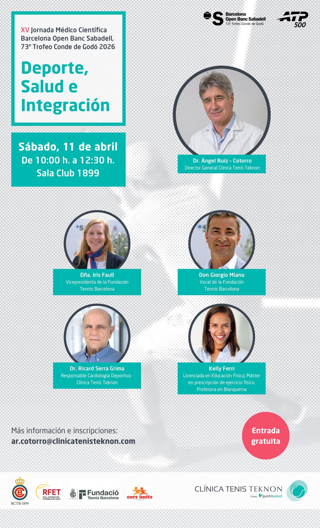L’entrada és oberta als socis i sòcies de l’RCTB-1899 amb inscripció prèvia a ar.cotorro@clinicatenisteknon.com. No és necessari disposar d'entrada de dia.